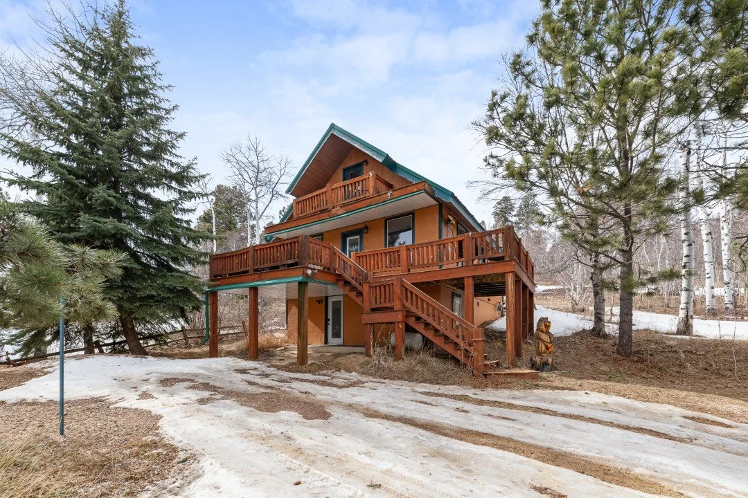 This home is located 3 miles North of Sturgis. Those three miles are on a maintained gravel road. The home is located on land with few neighbors. The home is surrounded by pine trees and looks out to the famous and unique Bear Butte mountain which has hiking trails and a nearby lake that is great for fishing or paddle boarding.